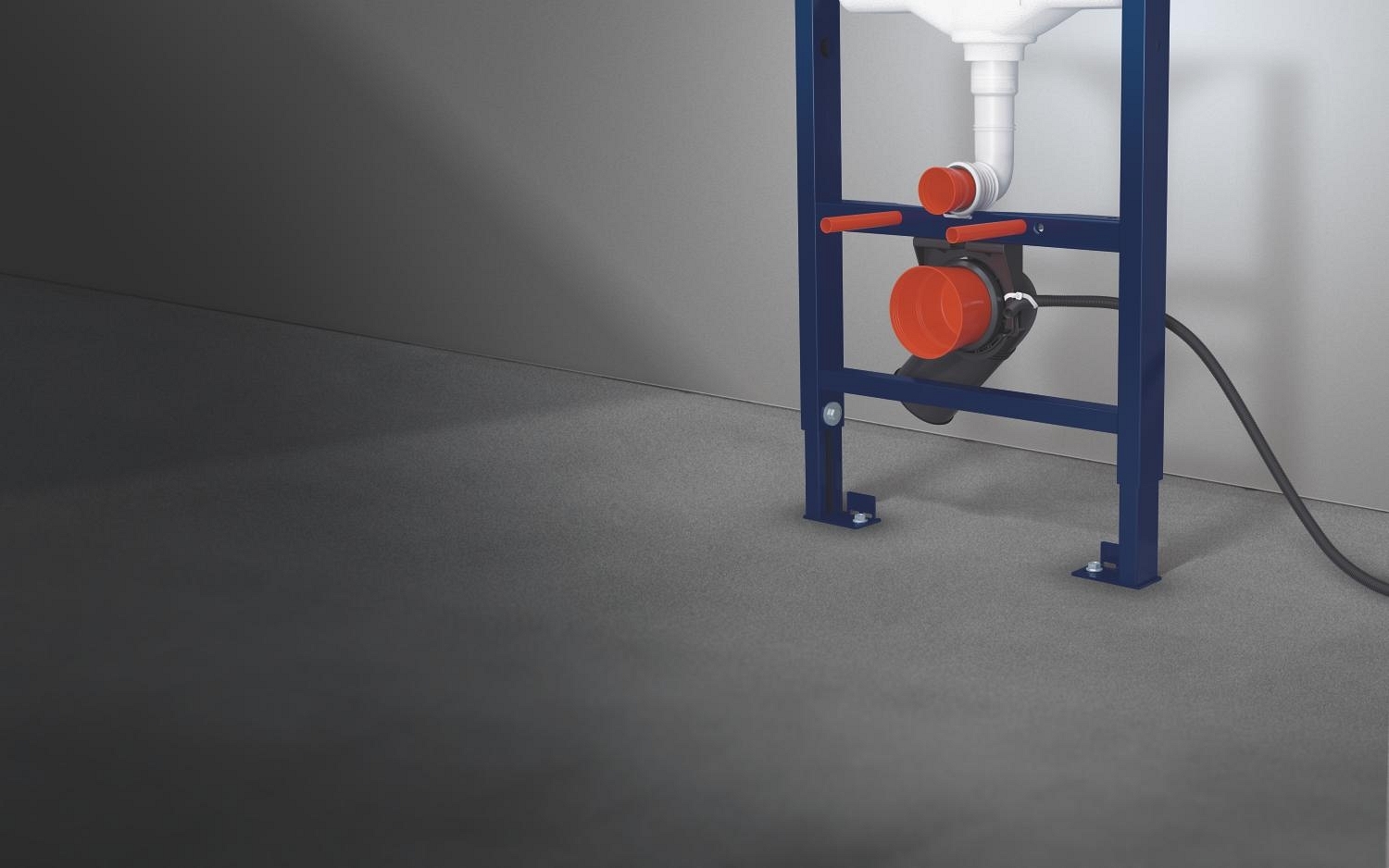 • Avloppsböj Ø 90 mm med djupinställning och reducering Ø 90/110 mm för anpassning till avloppssystemet.