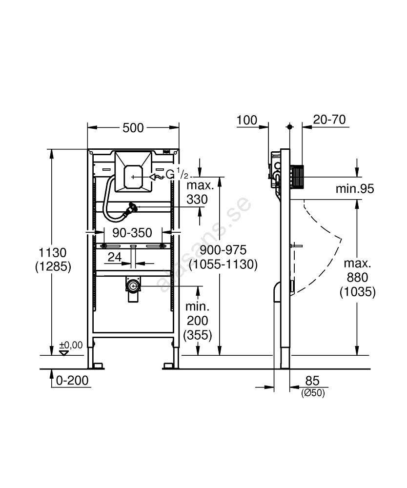 GROHE 38786001 - Urinalmodul RAPID SL 1,13 m och 1,30 m, vit | Alasans