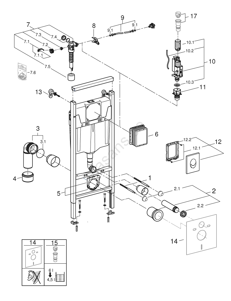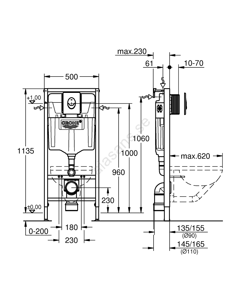 • GROHE Rapid SL installationssystem för väggmonterad WC-stol, höjd 1,13 m.