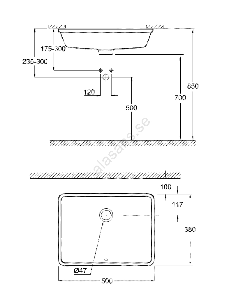 • Mått 492 × 370 mm, idealiskt för kompakta badrum.