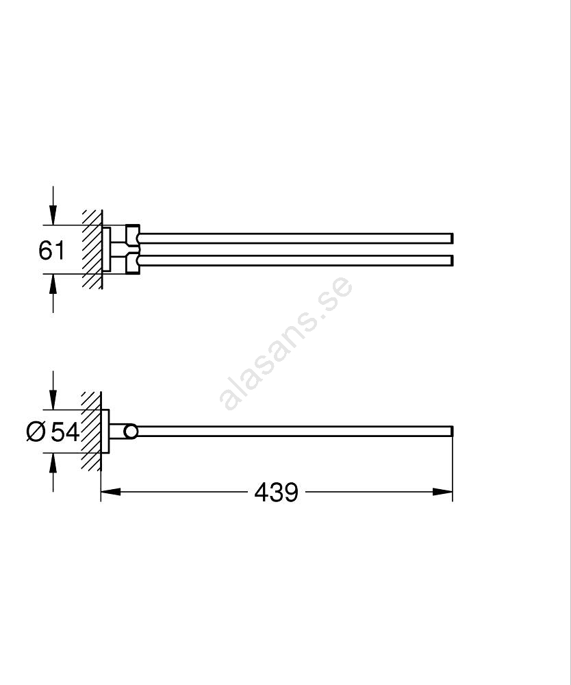 • Längd 439 mm ger gott om plats för att hänga handdukar.