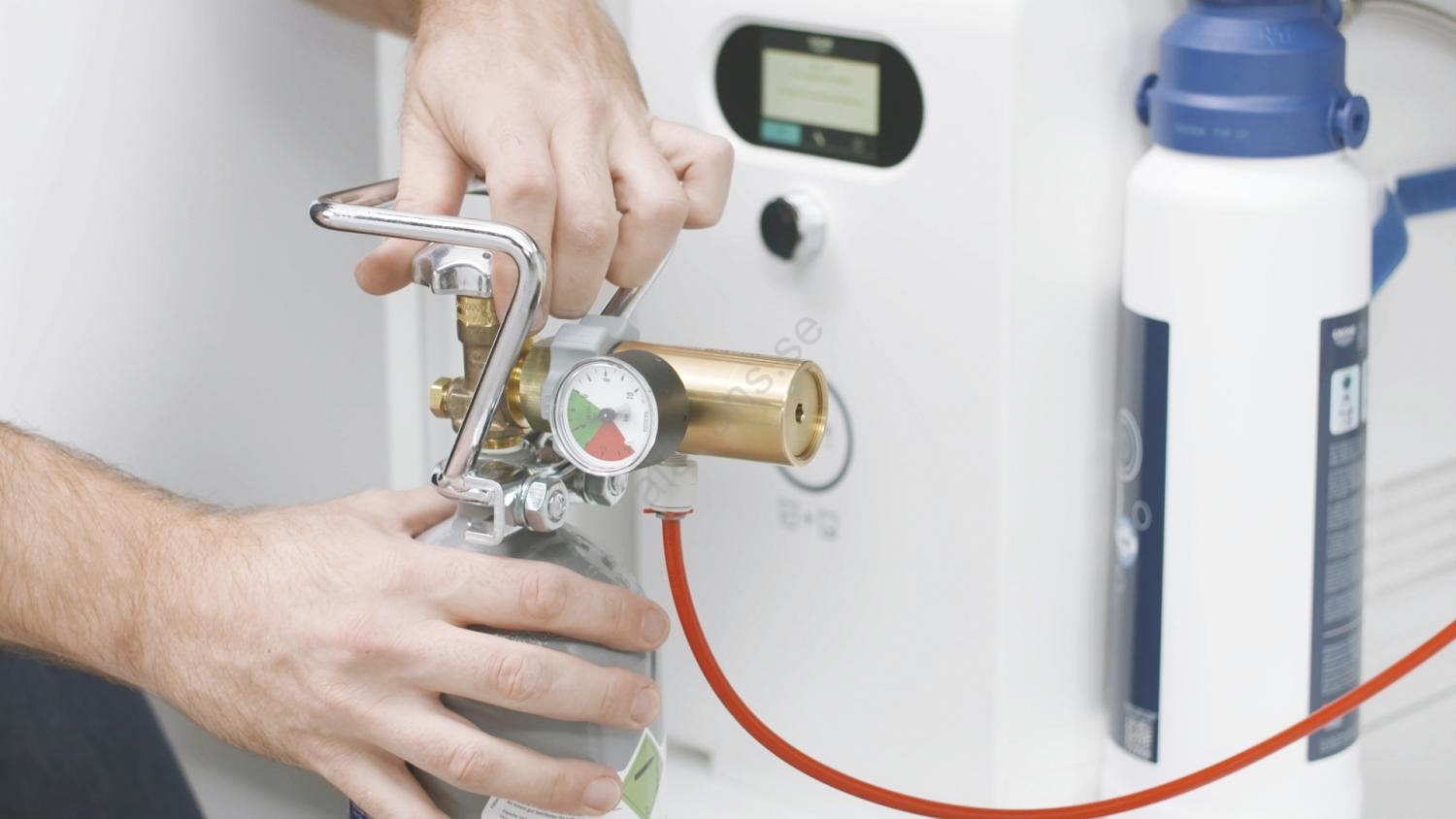 • Startpaket innehåller en 2 kg CO₂-flaska för användning med GROHE Blue Professional-systemet.