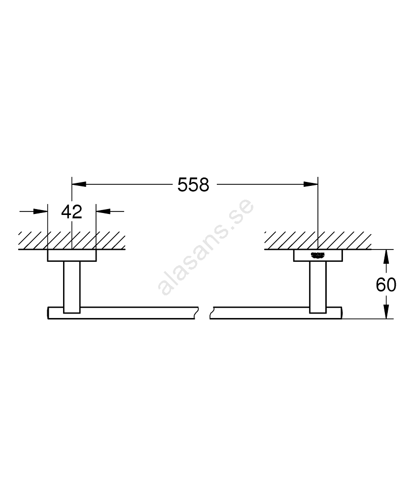 • Total längd 600 mm, användbar längd 558 mm för bekväm upphängning av handdukar.
