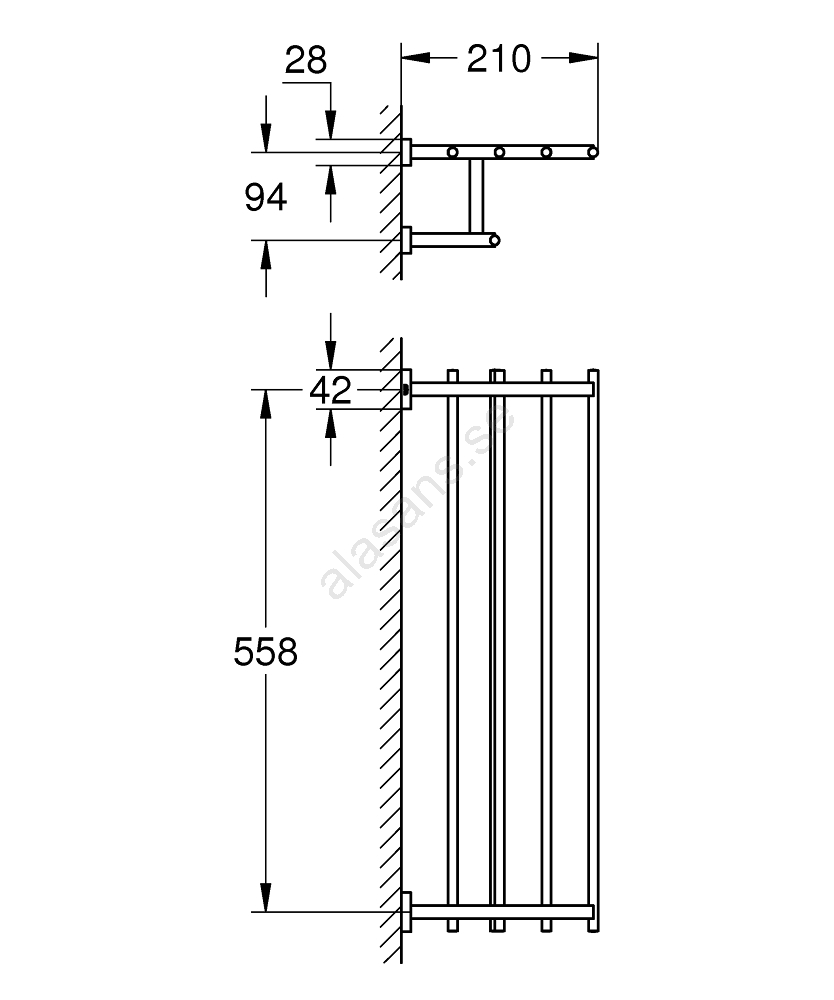• Längd 600 mm, monteringsavstånd 558 mm.