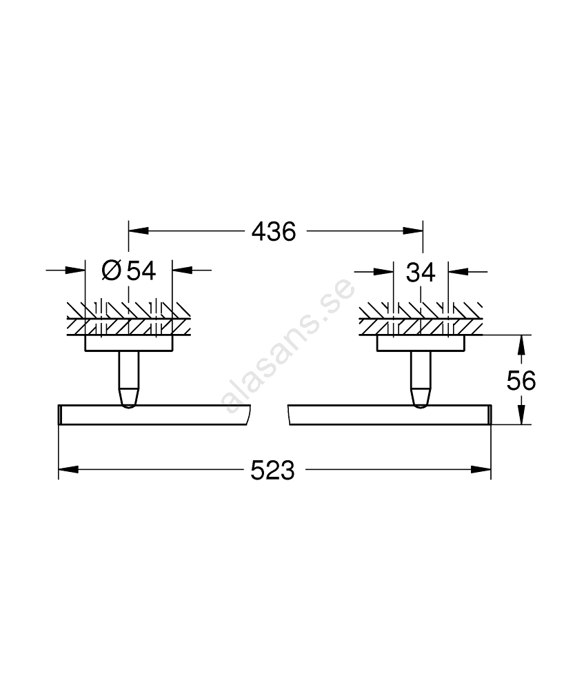 • Kan monteras genom borrning (skruvar och plugg ingår) eller med lim (limmet GROHE QuickGlue A2 41 128 000 säljs separat).