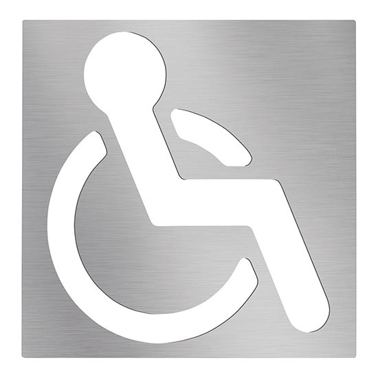 • Ikon i rostfritt stål för märkning av rullstolsanpassade toaletter.