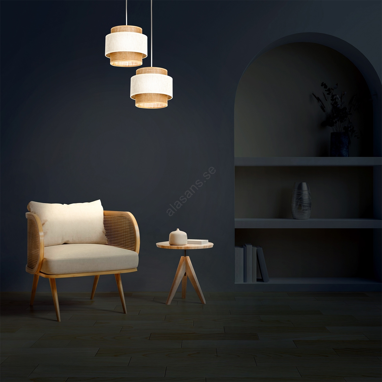 Hänglampa på sladd BOHO 2xE27/60W/230V krämvit/jute | Alasans