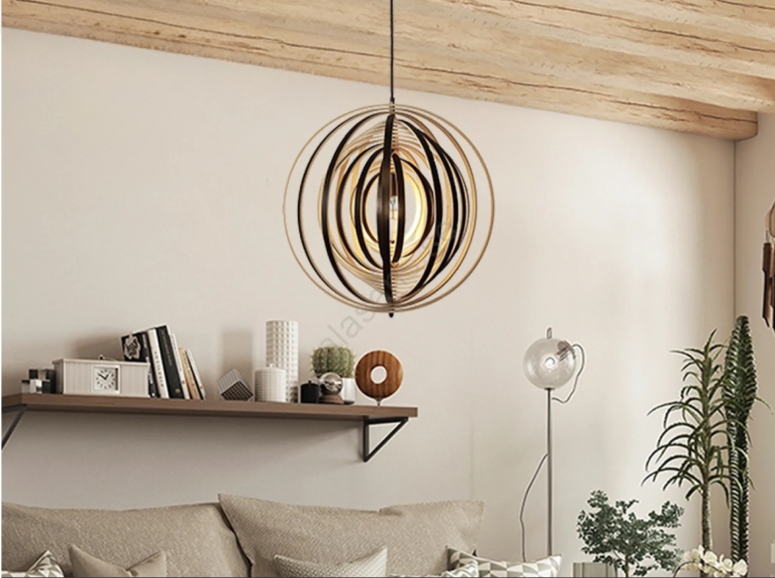 • Takpendel på sladd 1xE27/60W/230V Ø 50 cm massivt trä/fanér/gummiträ