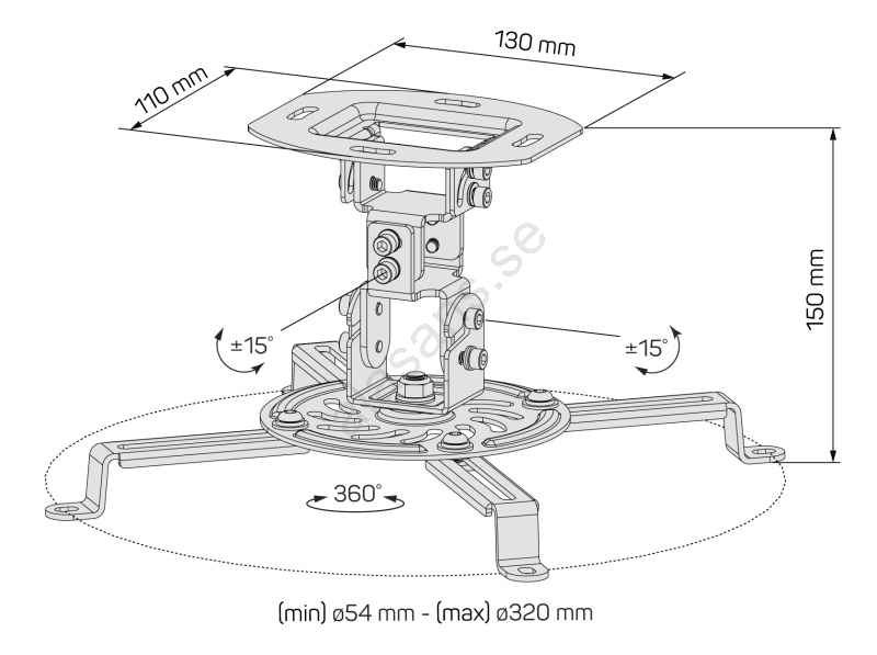• Kompatibelt med projektorer med monteringshålsavstånd från 54 mm till 320 mm.
