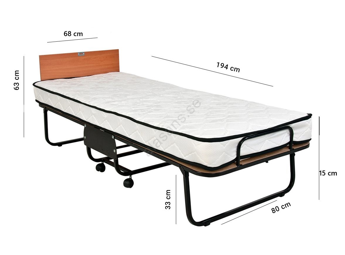 • Den hopfällbara sängen är utrustad med sänggavel och 15 cm tjock resårmadrass, som ger maximal komfort för en god natts sömn.