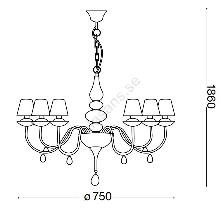 Ideal Lux - Ljuskrona på kedja BLANCHE 6xE14/40W/230V diameter 75 cm vit | Alasans