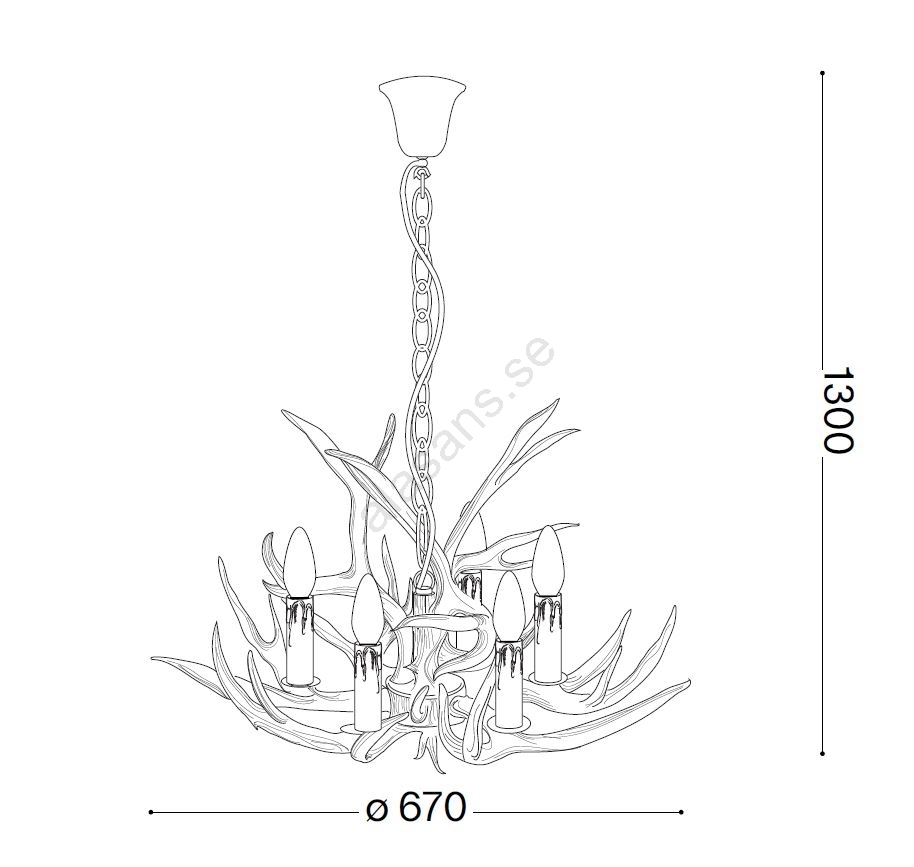 Ideal Lux - Taklampa CHALET 6xE14/40W/230V kedja, renhornsdesign | Alasans