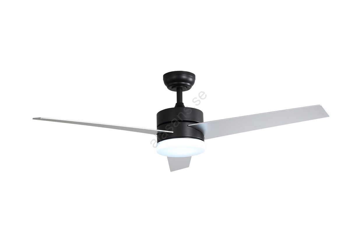 • Dubbelsidiga fläktblad: ena sidan i silver, den andra med mörk träfinish.