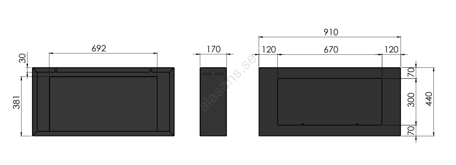 InFire - Väggmonterad BIO-kamin 44x91 cm 3 kW svart | Alasans