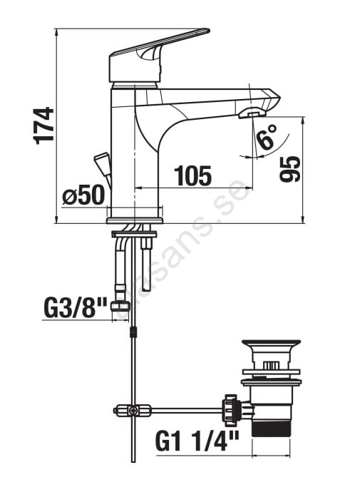 JIKA H3112E10041111 - Tvättställsblandare TALAS 17,4 cm krom utan överfyllnad | Alasans