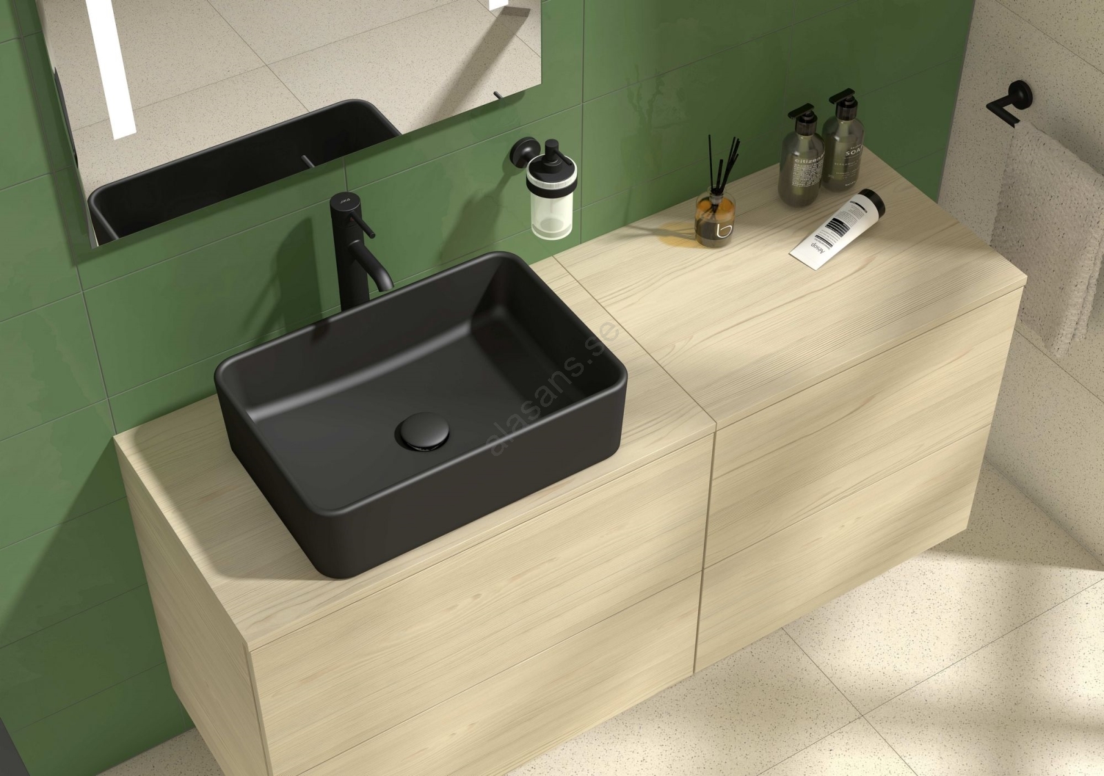 • Handfatet är avsett för installation på bänkskiva, vilket möjliggör flexibel placering och kombination med olika typer av bänkskivor för badrum.