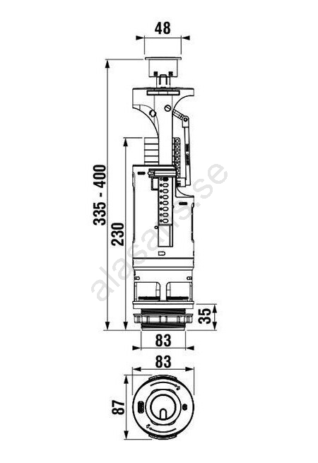 • Höjdjusterbar – passar cistern med inre höjd 336 - 440 mm.