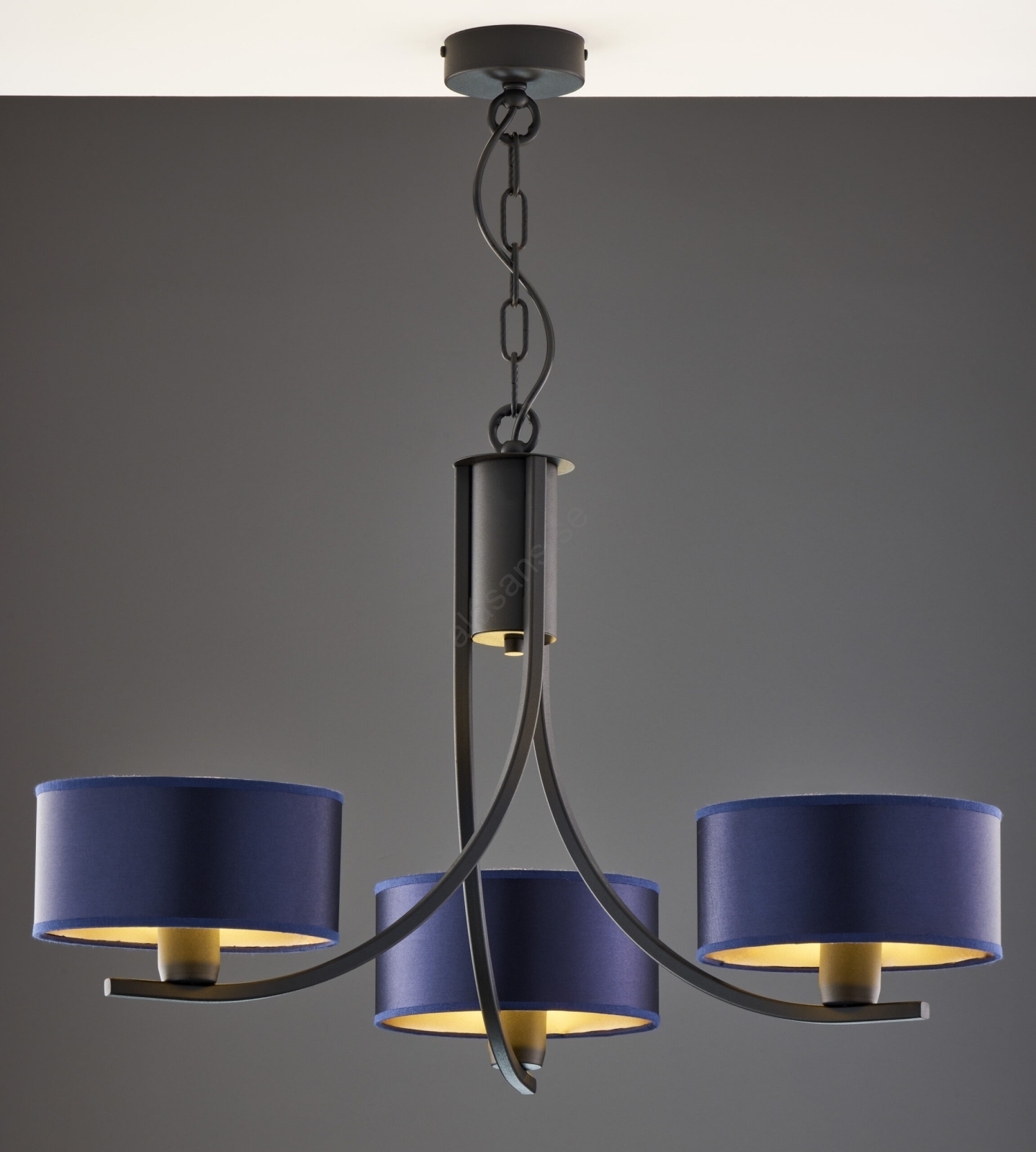 Jupiter 2099 - Ljuskrona med kedja ARTHUR 3xE27/15W/230V blå/svart