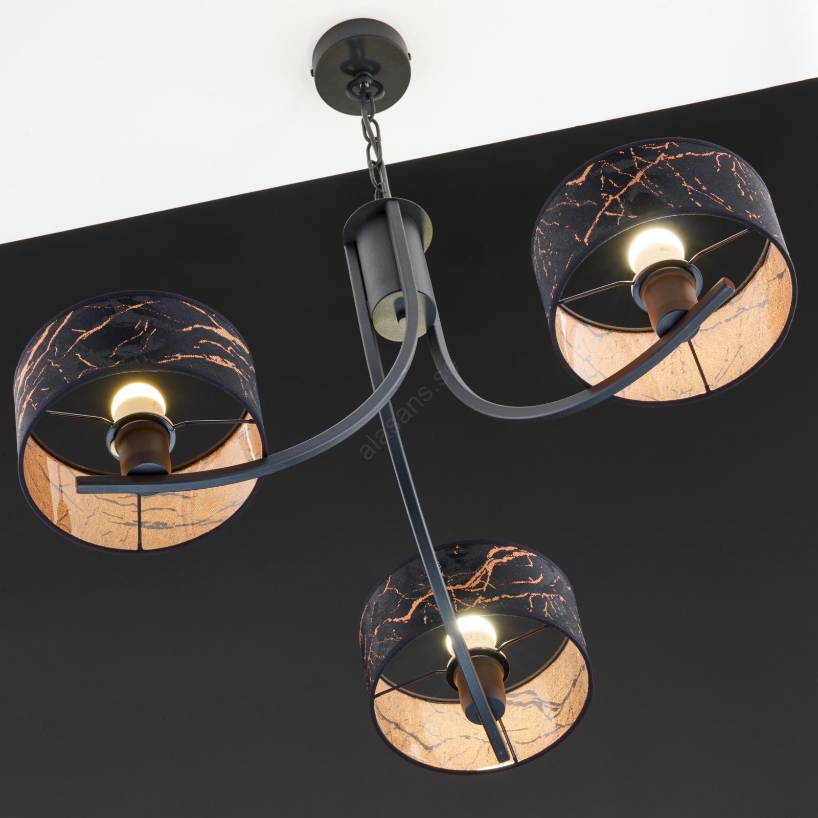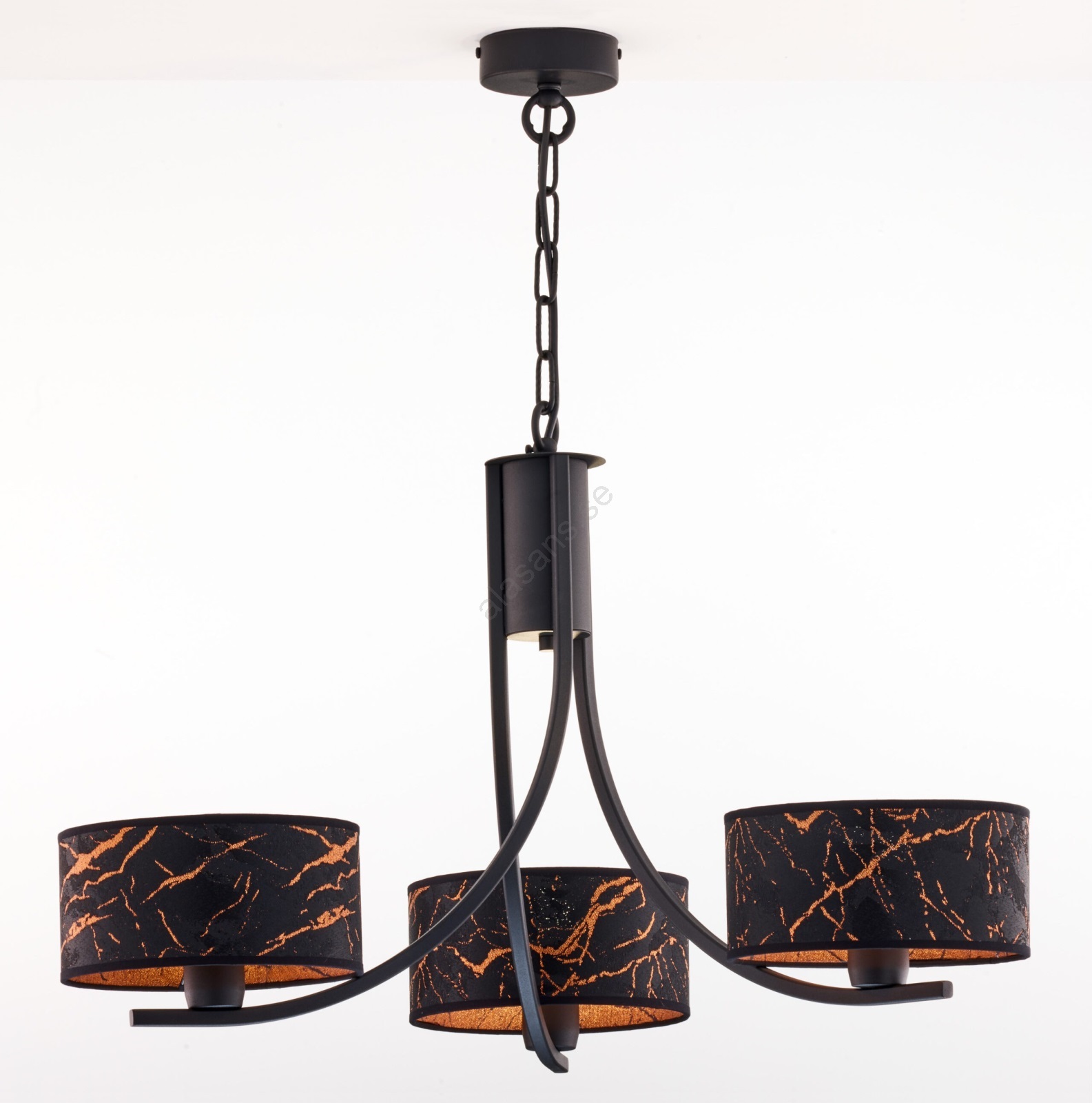 Jupiter 2106- Ljuskrona med kedja ARTHUR 3xE27/15W/230V svart/orange/marmordekor | Alasans
