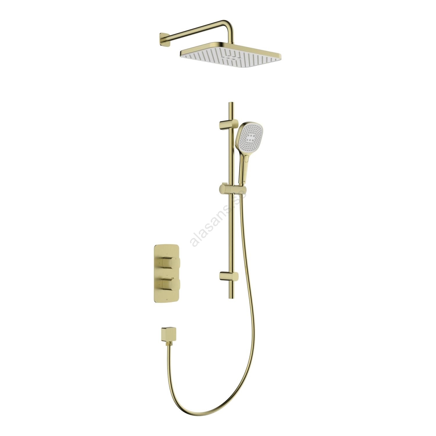 KFA Armatura 5759-301-31 – Duschset med infälld termostatblandare MALAGA, borstad guldfinish | Alasa