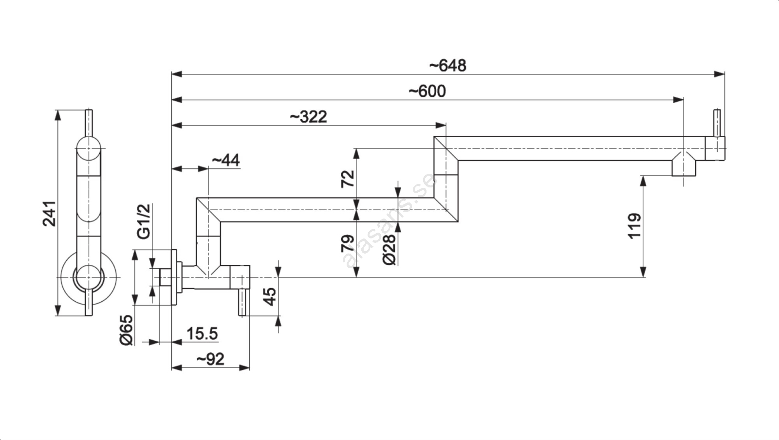 • Max. räckvidd för pipen: 60 cm.
