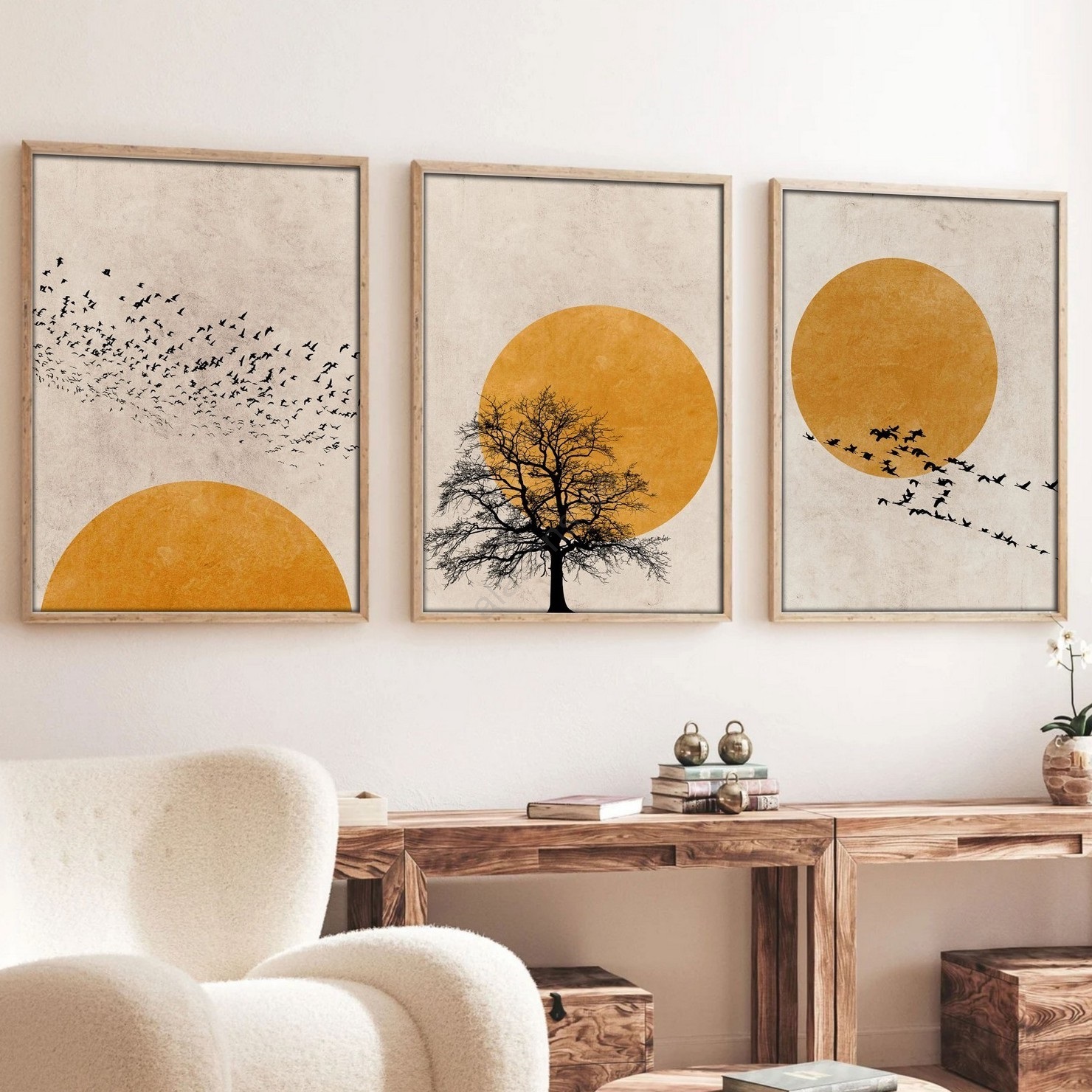 Set med 3 tavlor i fotoram 50x70 cm beige/orange | Alasans