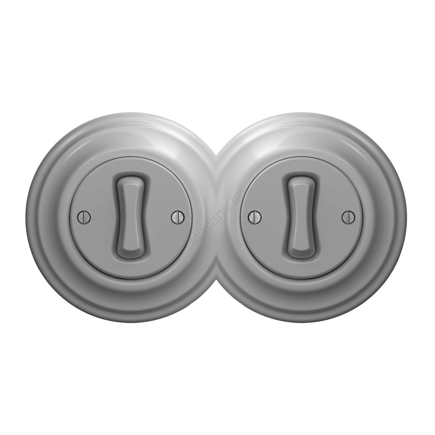 Kliklap - Dubbel enpolig retroströmbrytare med ram nr 1, grå | Alasans