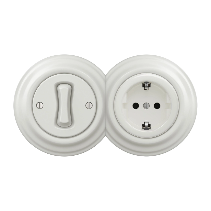 Kliklap - Retro enkelpolig strömbrytare nr. 1 och SCHUKO-uttag 230 V med vit ram | Alasans