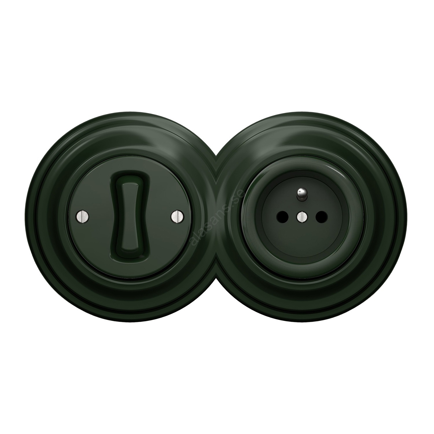 Kliklap - Retro enkelpolig strömbrytare nr. 1 och 230V-uttag med grön ram | Alasans