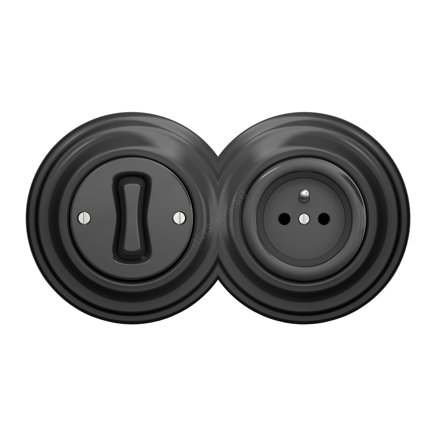 Kliklap - Retro enpolig strömbrytare nr 1 och 230 V-uttag med ram i antracit | Alasans