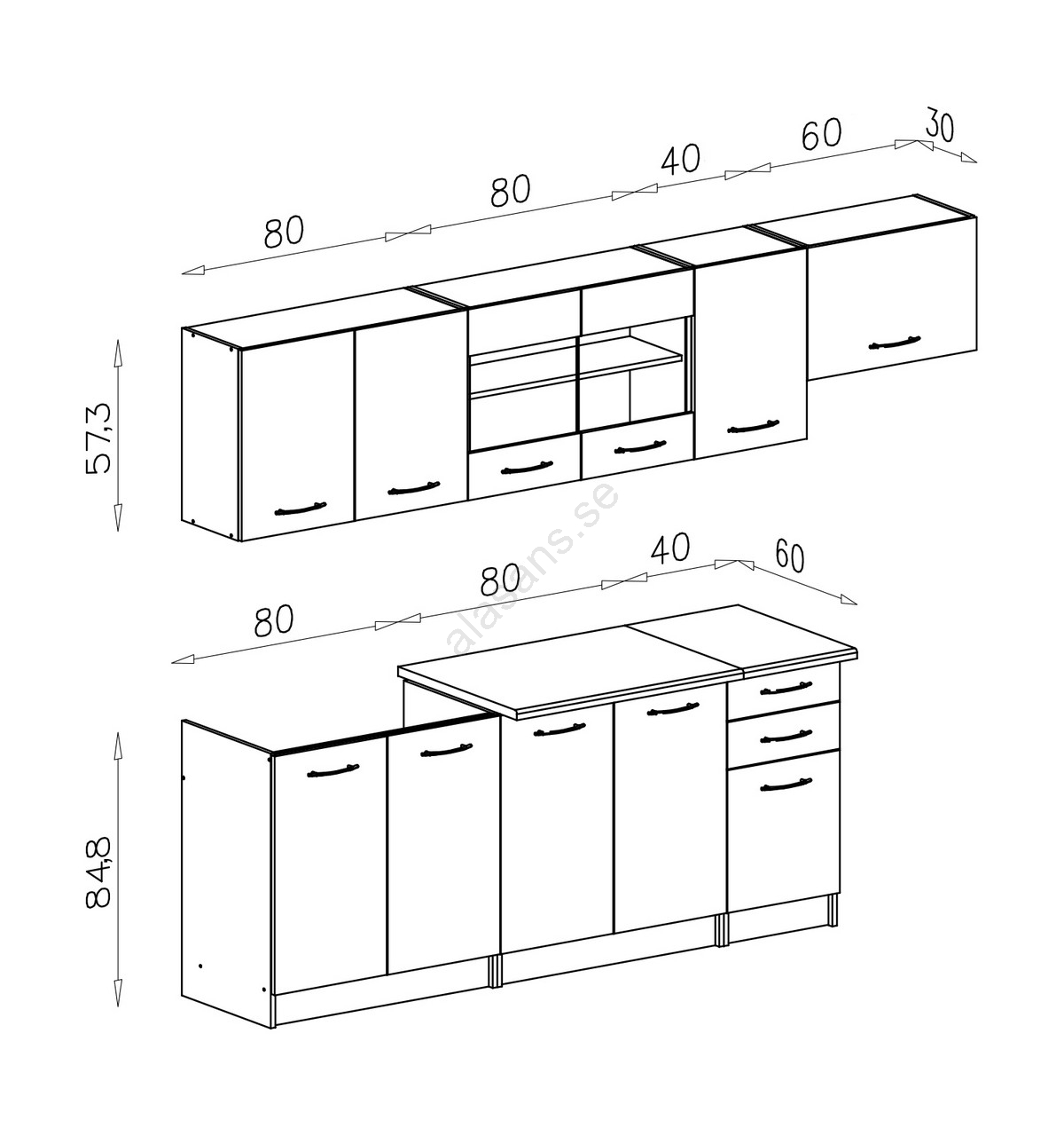 • Uppställningen av skåpen är modulär, du kan anpassa köket efter dina egna önskemål.