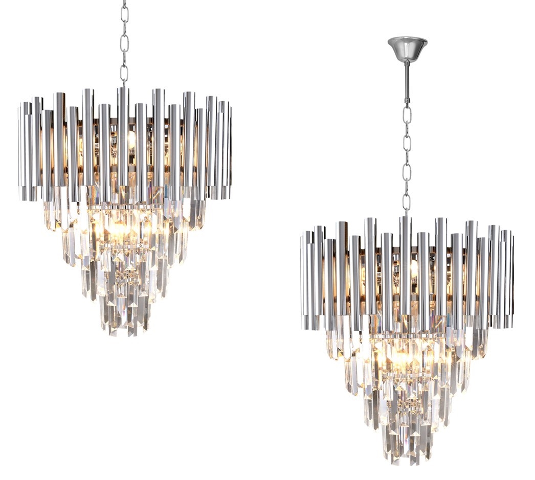 Ljuskrona i kristal med kedja MADISON 9xE14/40W/230V skinande krom