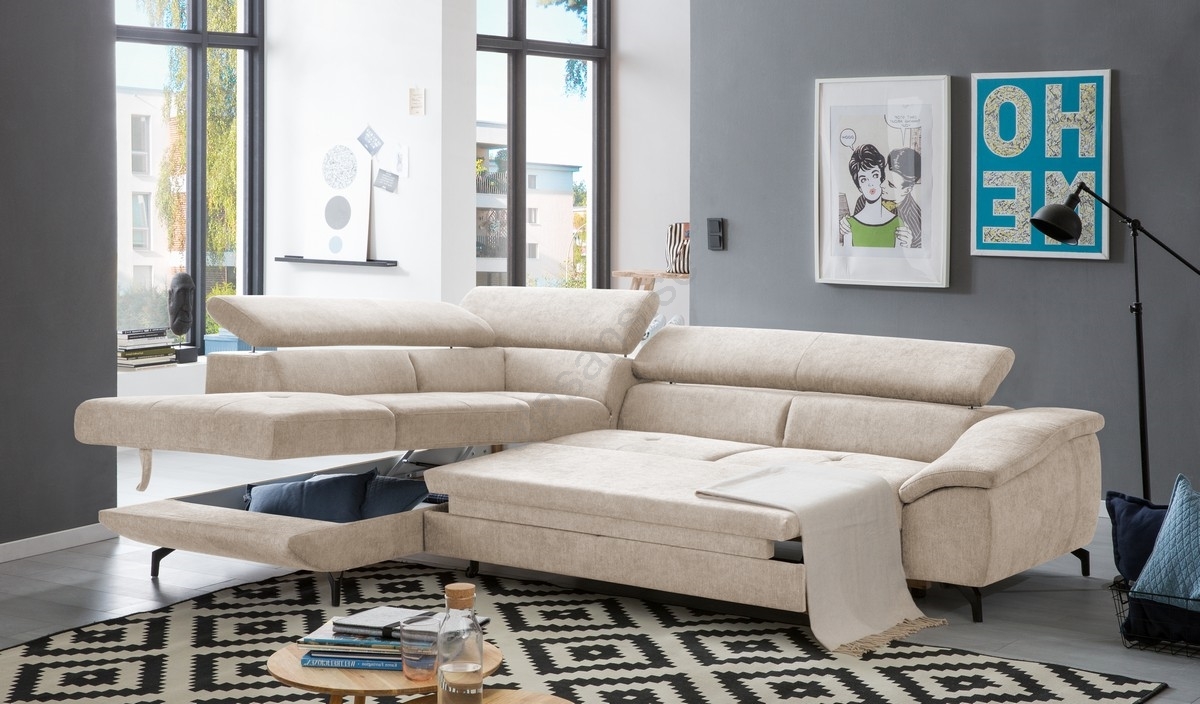 • Utdragbar hörnsoffa med förvaringsutrymme i L-form BRESCIA höger beige