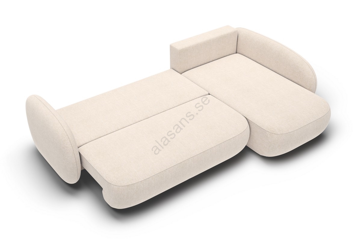 • L-formad bäddbar hörnsoffa med förvaring OLBIA, vänsterutförande, beige