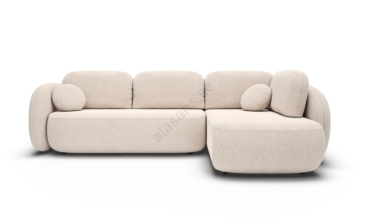 L-formad bäddbar hörnsoffa med förvaringsutrymme OLBIA, högerutförande, beige | Alasans