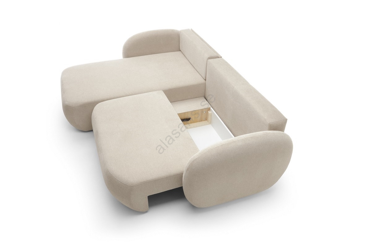 Vänsterhörnsoffa med bäddfunktion och förvaringsutrymme i L-form OLBIA beige | Alasans
