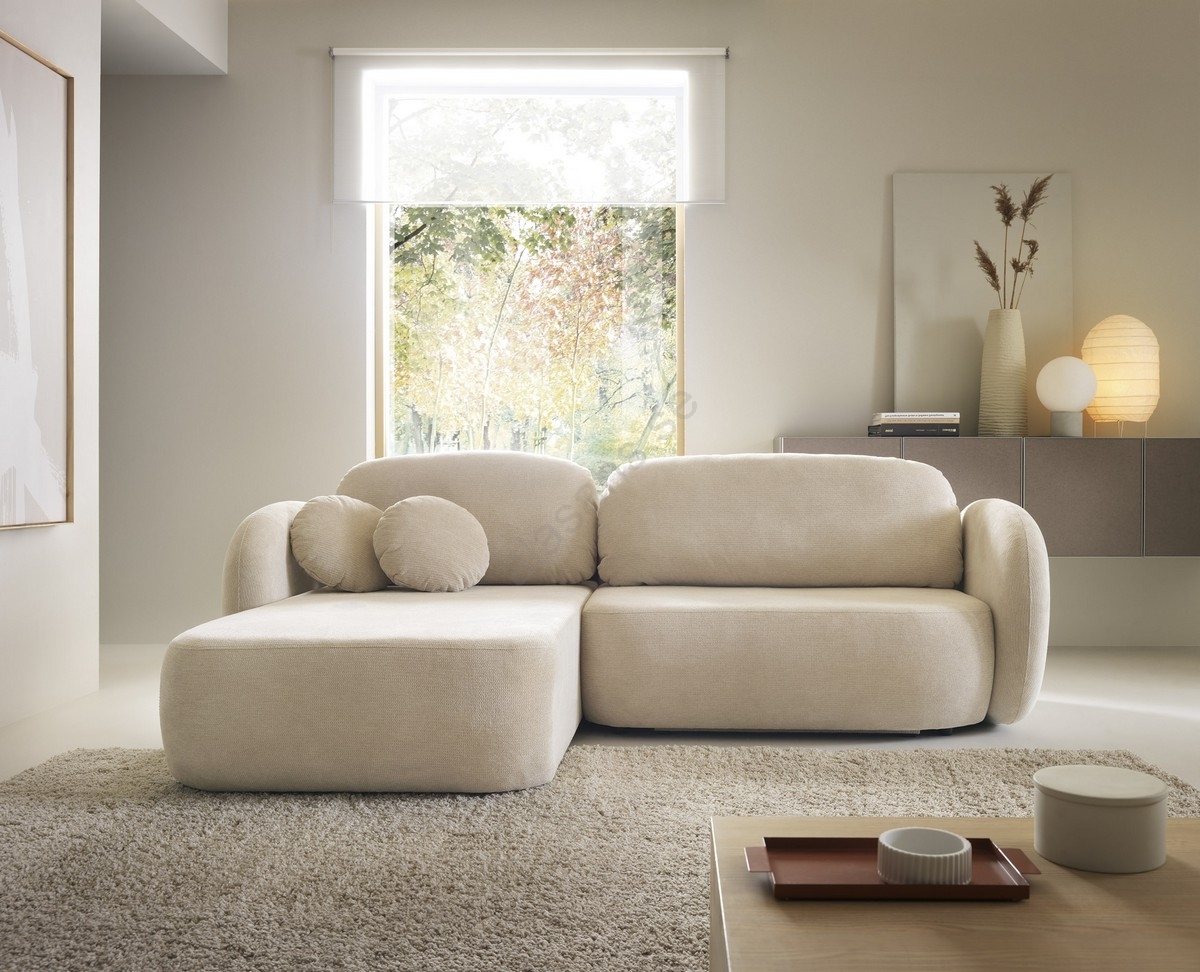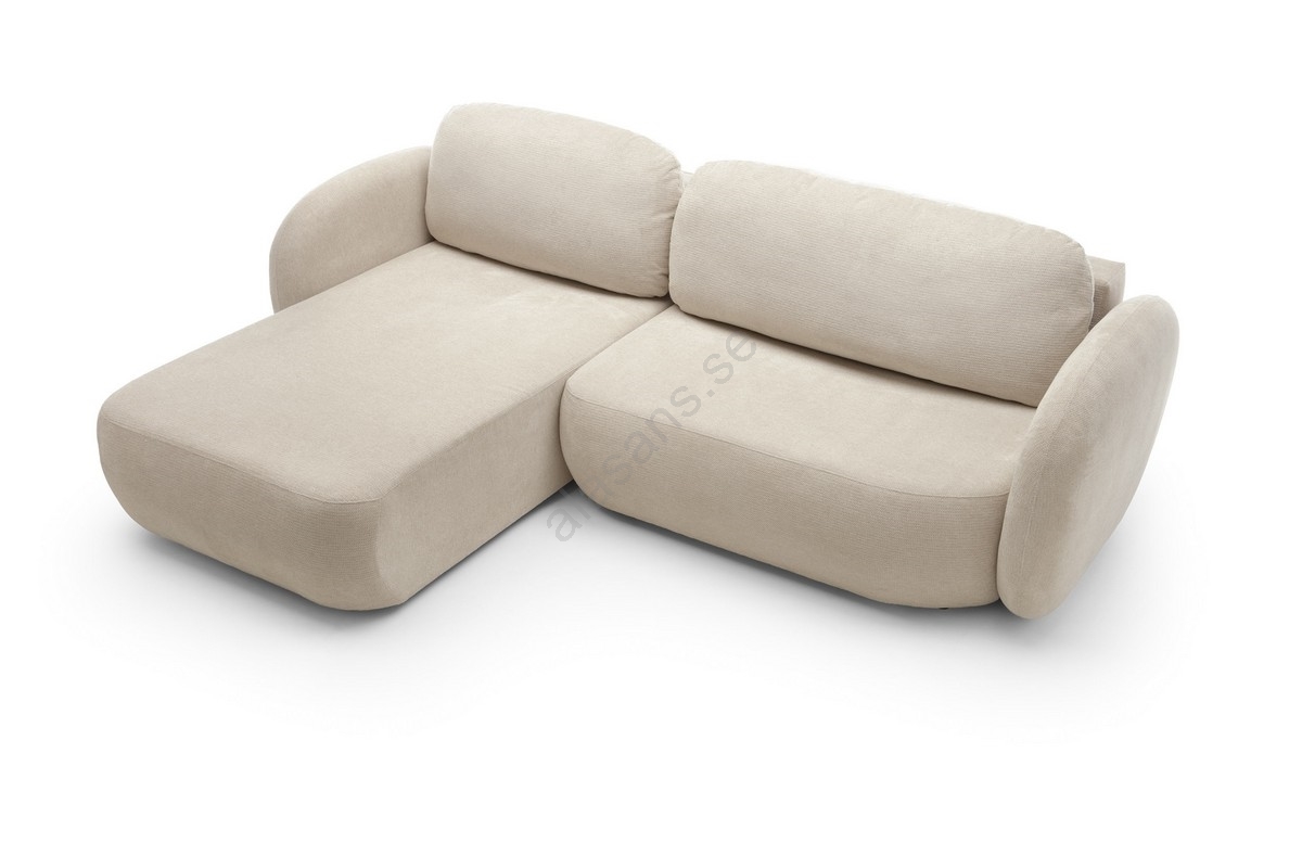 • Vänsterhörnsoffa med bäddfunktion och förvaringsutrymme i L-form OLBIA beige