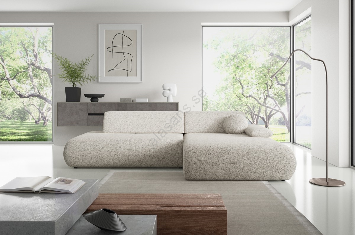 L-formad hörnsoffa med bäddfunktion och förvaringsutrymme PRATO, höger, beige | Alasans