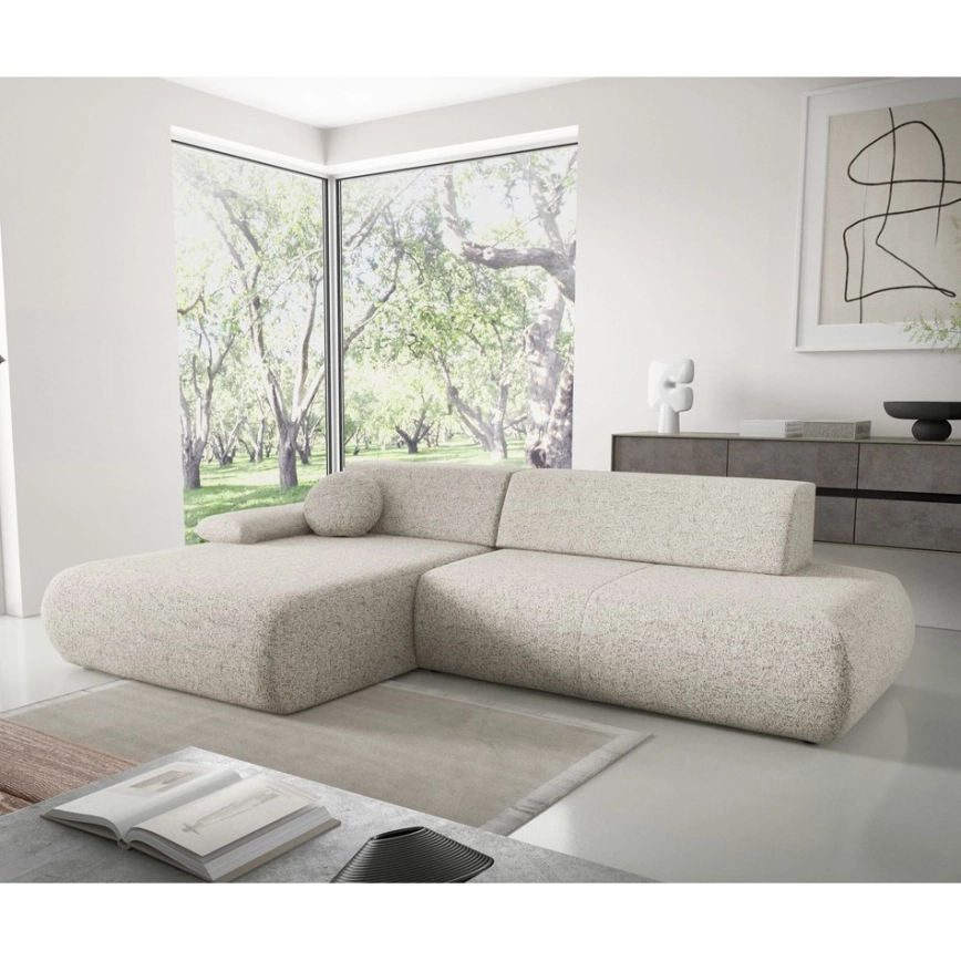 • Vänsterhängd L-formad hörnsoffa med bäddfunktion och förvaring PRATO, beige