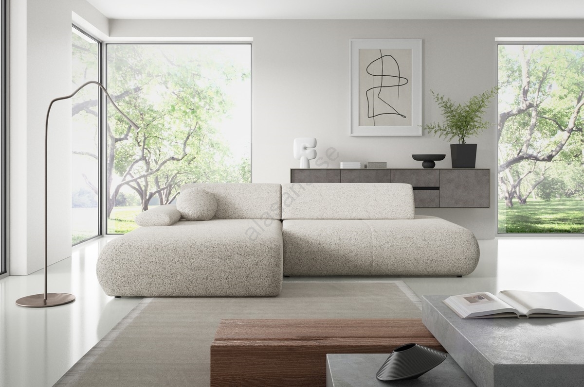 Vänsterhängd L-formad hörnsoffa med bäddfunktion och förvaring PRATO, beige | Alasans