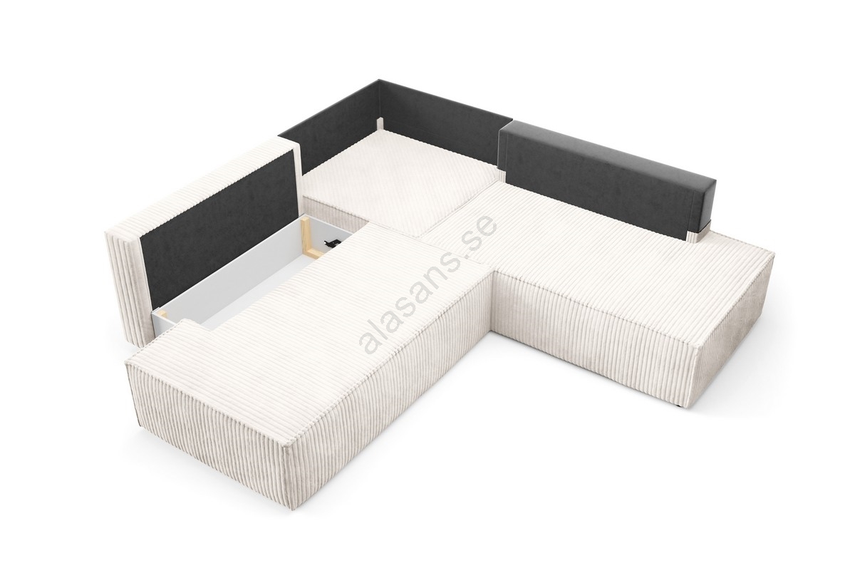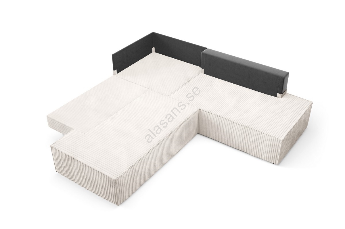 • Modern bäddbar hörnsoffa TERAMO (höger hörn) är det idealiska valet för den som söker en kombination av stil, komfort och funktionalitet.