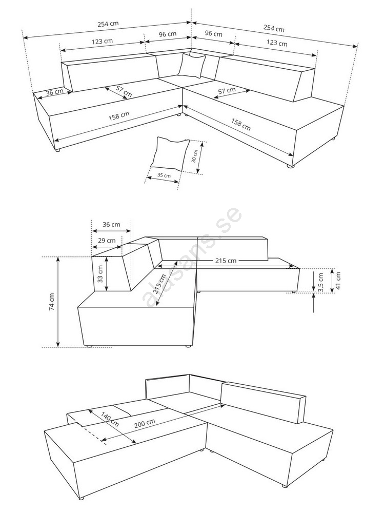 • Eleganta ben (höjd 3,5 cm) ger soffan ett modernt utseende samtidigt som de säkerställer stabilitet och lång hållbarhet.