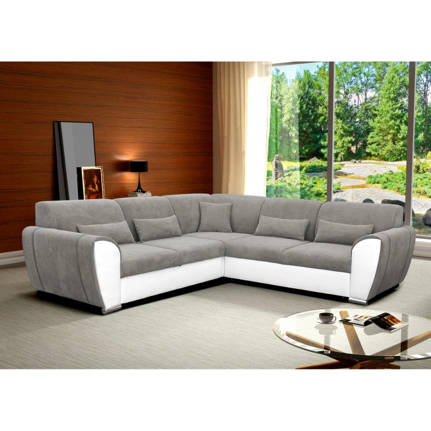 Hörnsoffa med bäddfunktion och förvaring i L‑form VISEU, vänsterutförande, grå/vit | Alasans