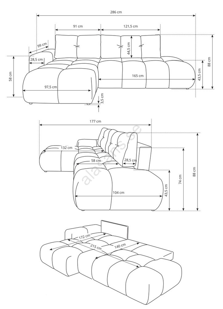 • Soffan har rymligt förvaringsutrymme för förvaring av sängkläder och andra säsongsartiklar.