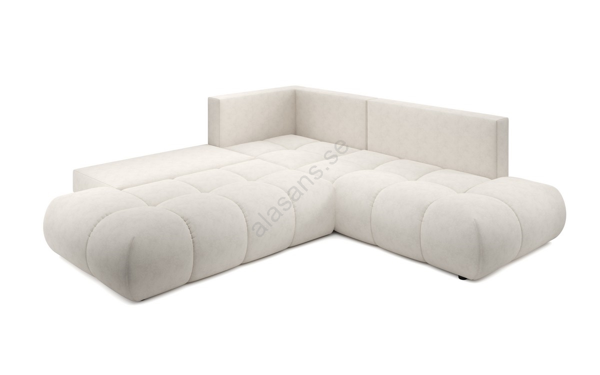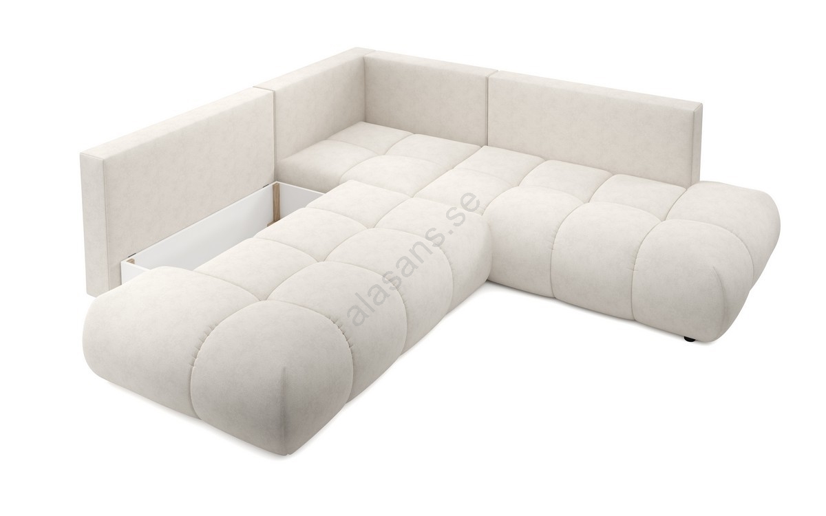 • ALMADA L-formad högerhörnsoffa, utdragbar med bäddfunktion och förvaringsutrymme, stoppad och klädd i beige