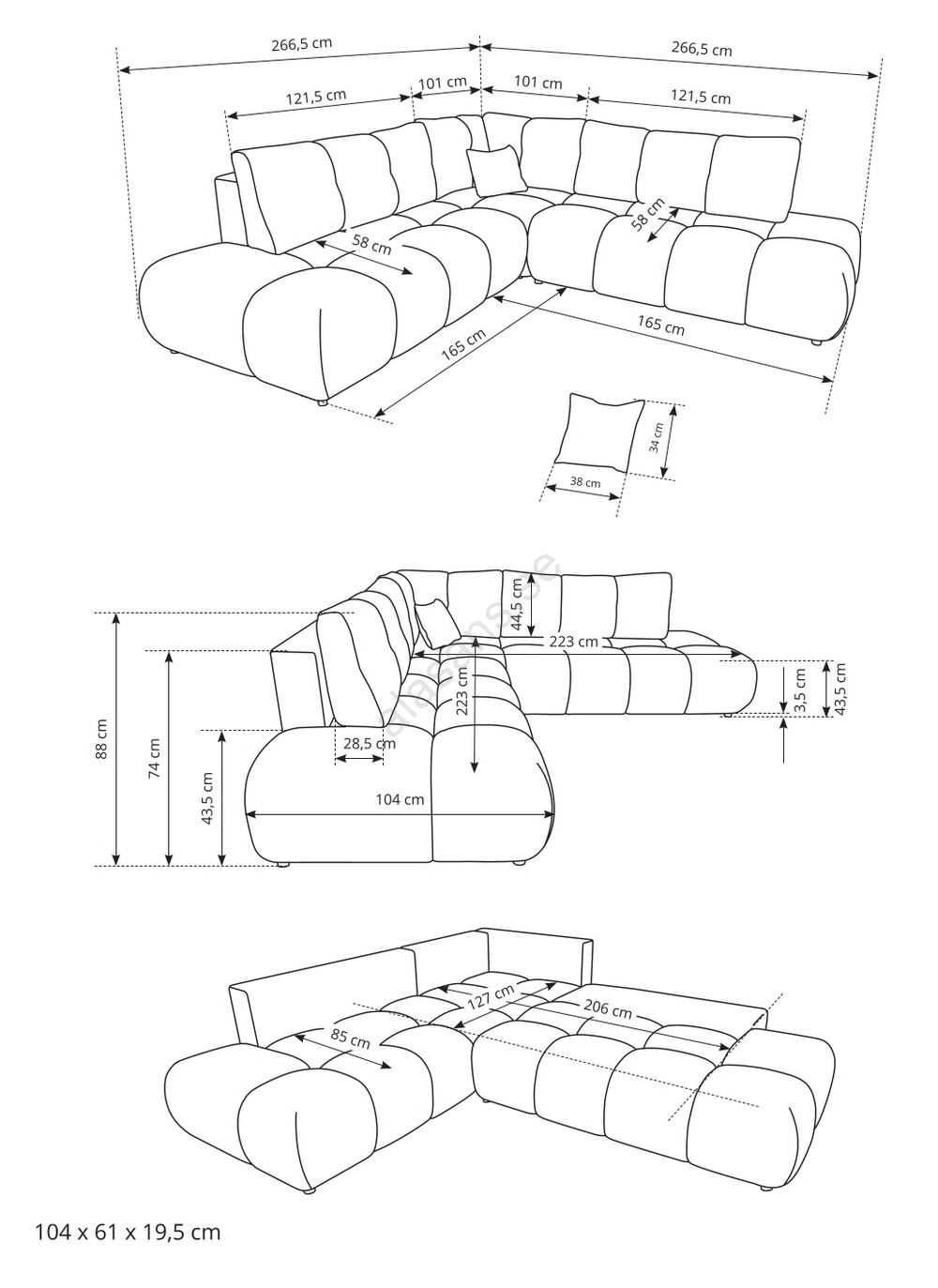 • Box nr 2: 166 x 103 x 44 cm (44,5 kg).