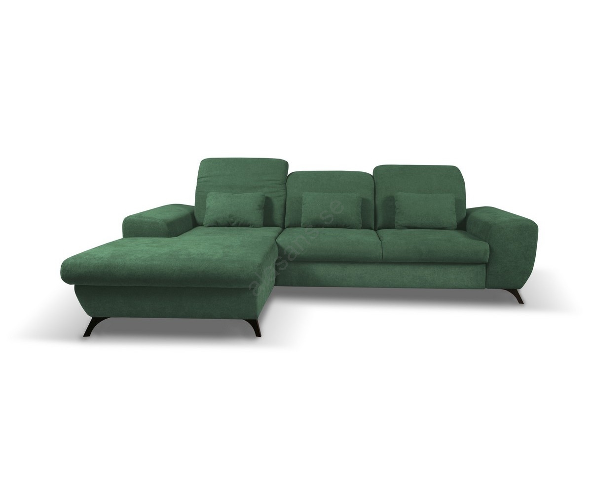 • Utdragbar L-formad stoppad hörnsoffa med förvaringsutrymme — ALTA, vänster, grön