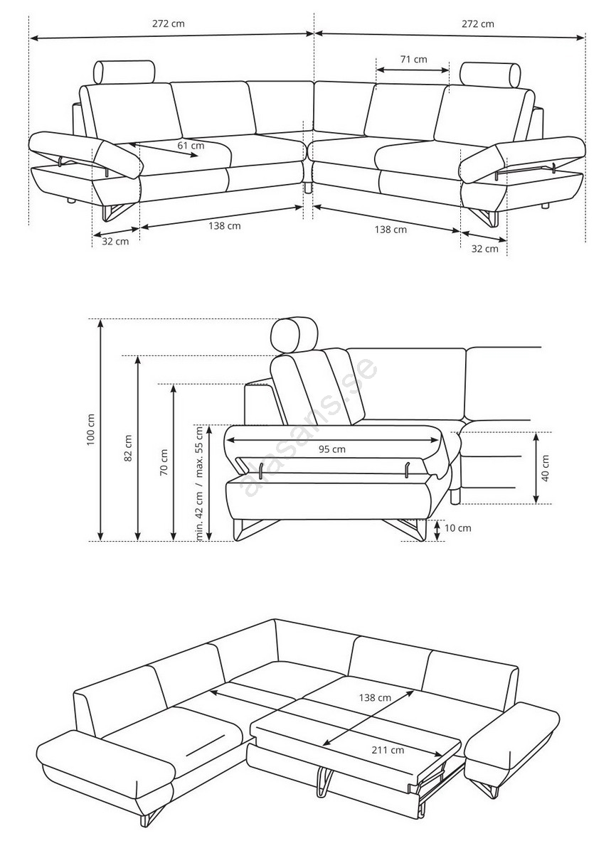 • Soffan har ett rymligt förvaringsutrymme för förvaring av sängkläder och andra säsongsartiklar.