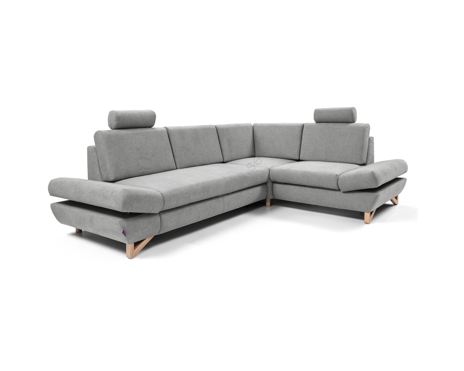 • Bäddbar, klädd L-formad hörnsoffa AVESTA med förvaringsutrymme, höger, grå