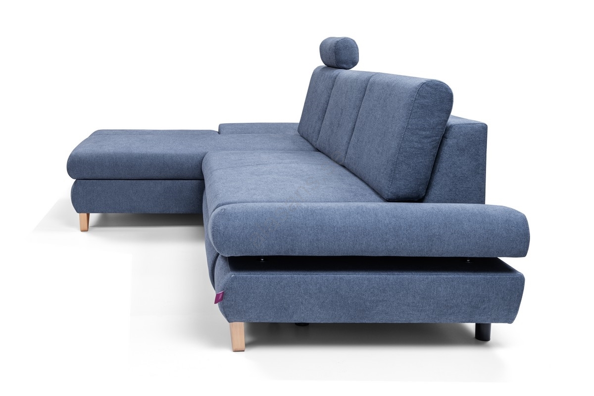 • AVESTA — bäddbar, stoppad hörnsoffa i L‑form med förvaring, höger, blå